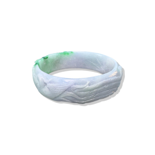 Abundance Bangle with Burma Jade Dragon and Phoenix Carving