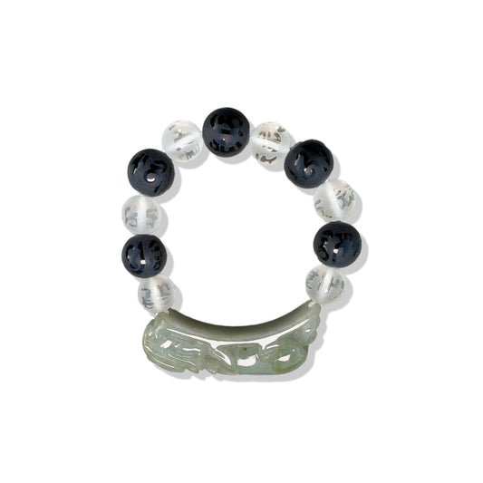 Balance bangle with Black ,Clear agate and Burma Jade Pi Xiu (貔貅) Carving