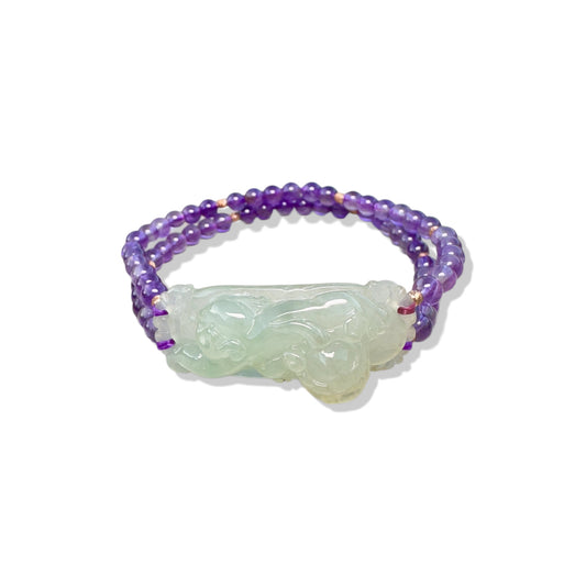 Calming Bangle with Amethyst and Burma Jade Pi Xiu (貔貅) Carving
