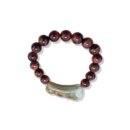 Protection Bangle with Tiger's Eyes and Burma Jade Pi Xiu (貔貅) Carving