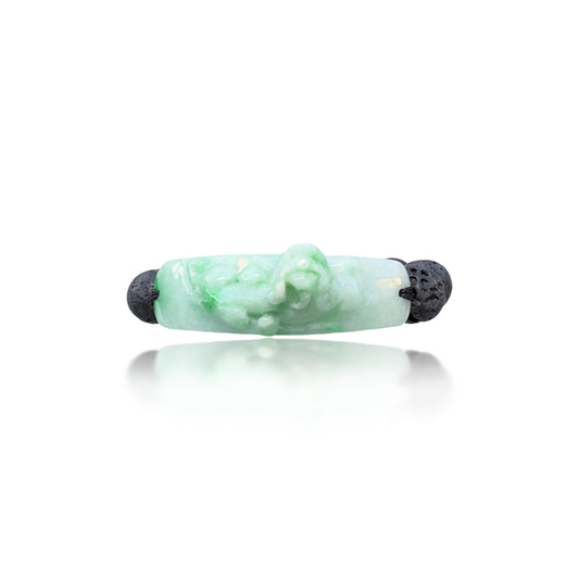 Protection Bangle with Lava and Burma Jade Pi Xiu (貔貅) Carving