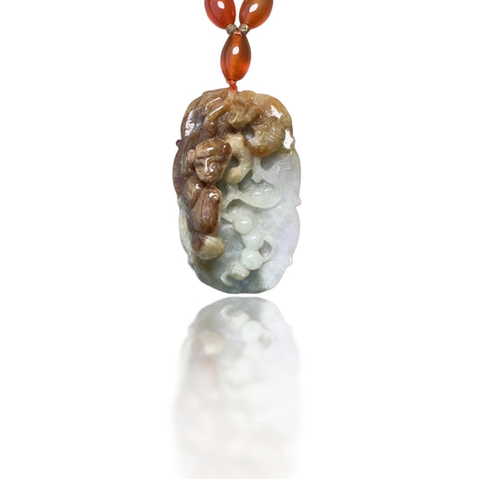 Courage Necklace with Carnelian, Lace Agate and Burma Jade Monkey Pendant