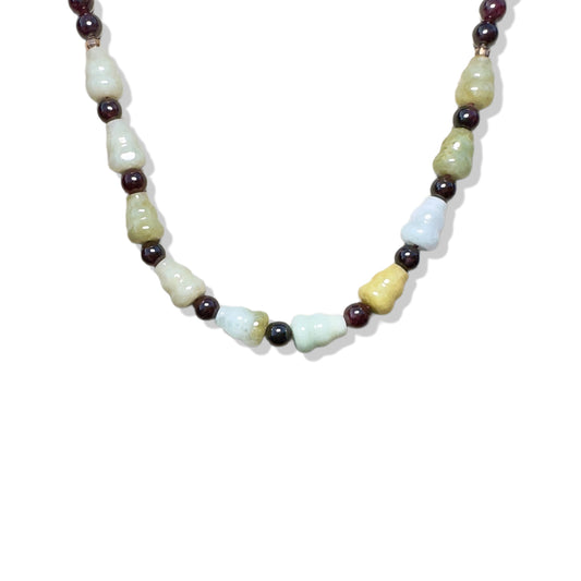 Passion Necklace with Garnet, Burma Jade Gourd Carving