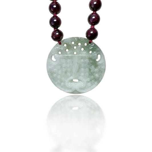 Passion Necklace with Garnet, Burma Jade Pendant and Pure Silver Bead