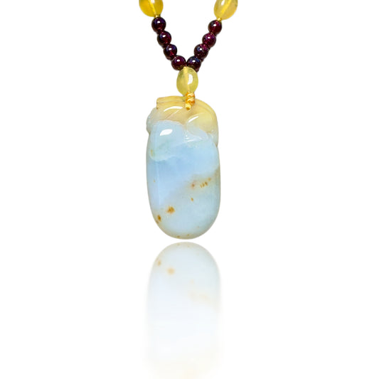 Passion Necklace with Garnet, Yellow Opal and Burma Jade Pi Xiu Pendant