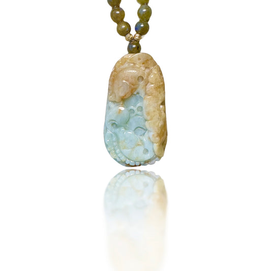 Transforming Necklace with Labradorite and Burma Jade Fish Pendant