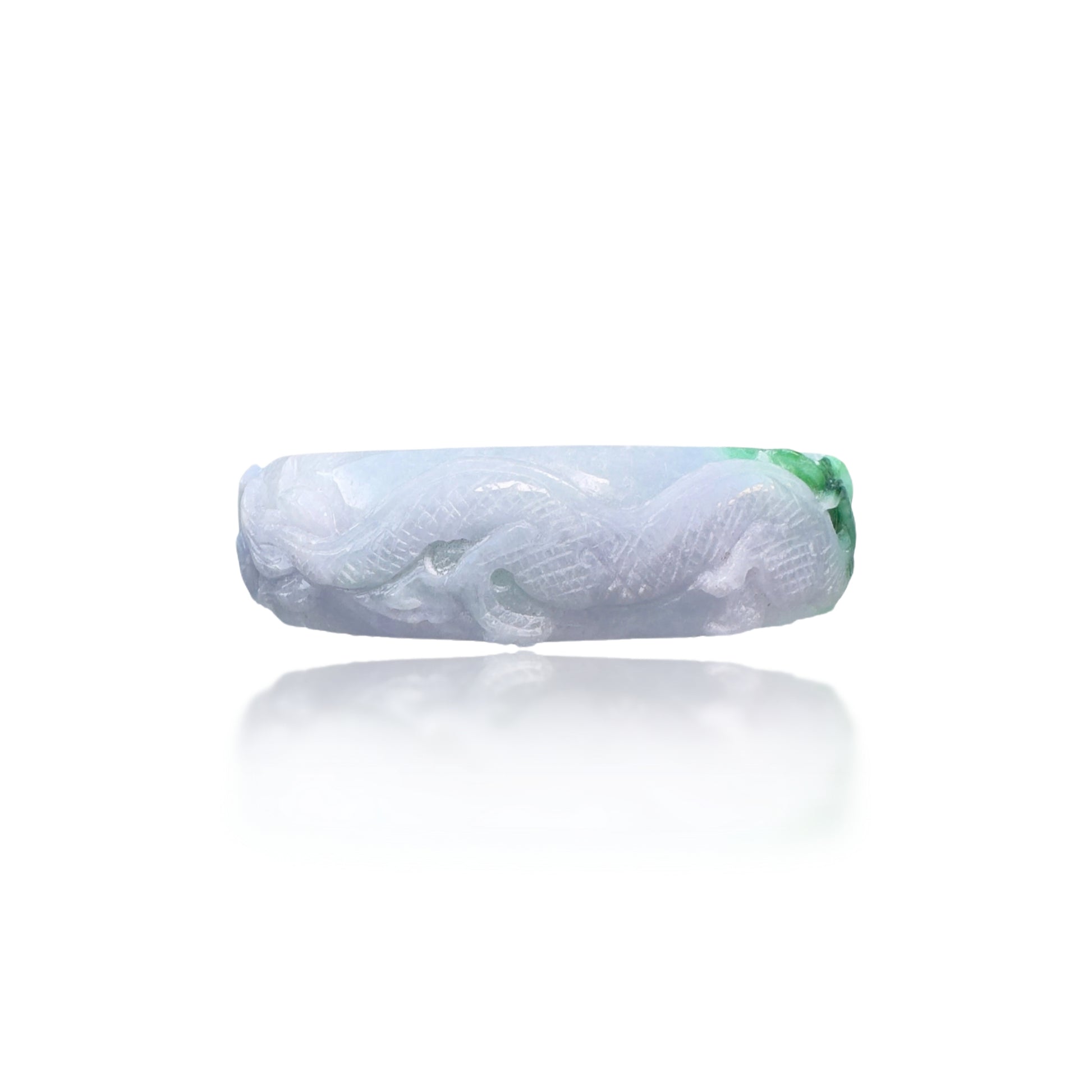 Crafted from premium-quality Burma jade, this intricately carved bangle showcases the powerful union of the dragon and phoenix – timeless symbols of balance, prosperity, and transformation. The jade’s natural med- dark green/ lavender hue is not only visually calming but is also cherished for its healing properties, making it a meaningful piece for both body and spirit.