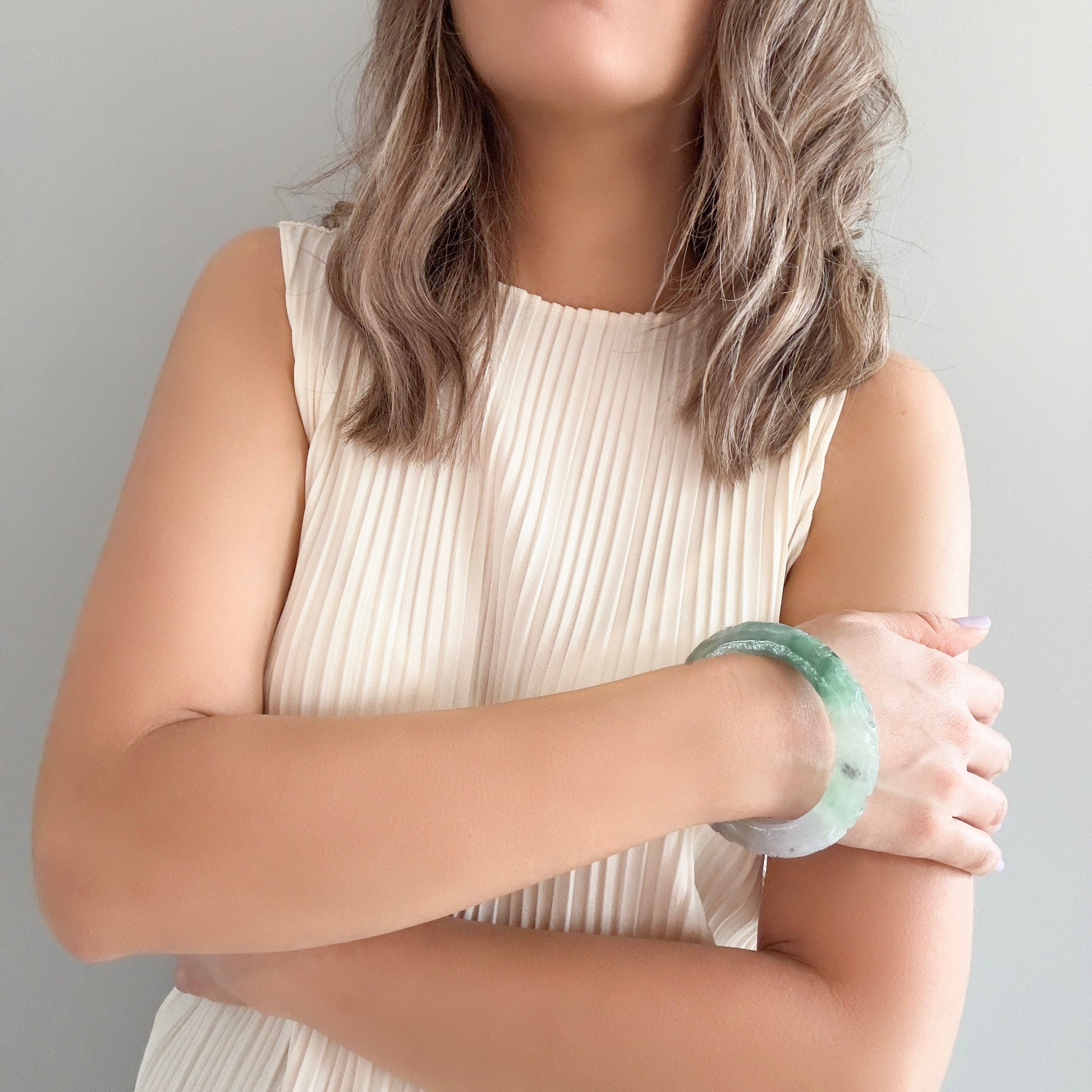 - The Ruyi symbolizing power, prosperity, and good luck, further enhances the bangle’s healing potential. The Ruyi is traditionally used to invite positive energy, help fulfil desires, and encourage a smooth, prosperous journey through life. When combined with the jade’s calming effects, the Ruyi enhances its ability to attract abundance and stability.
