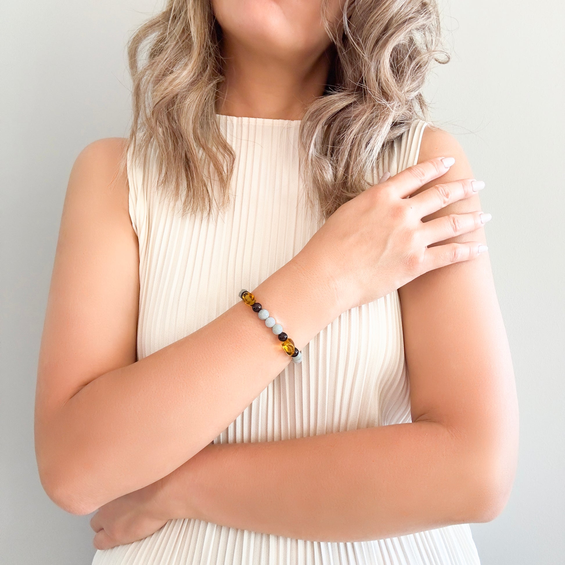 - Handcrafted in Australia using natural gemstones and elastic cord