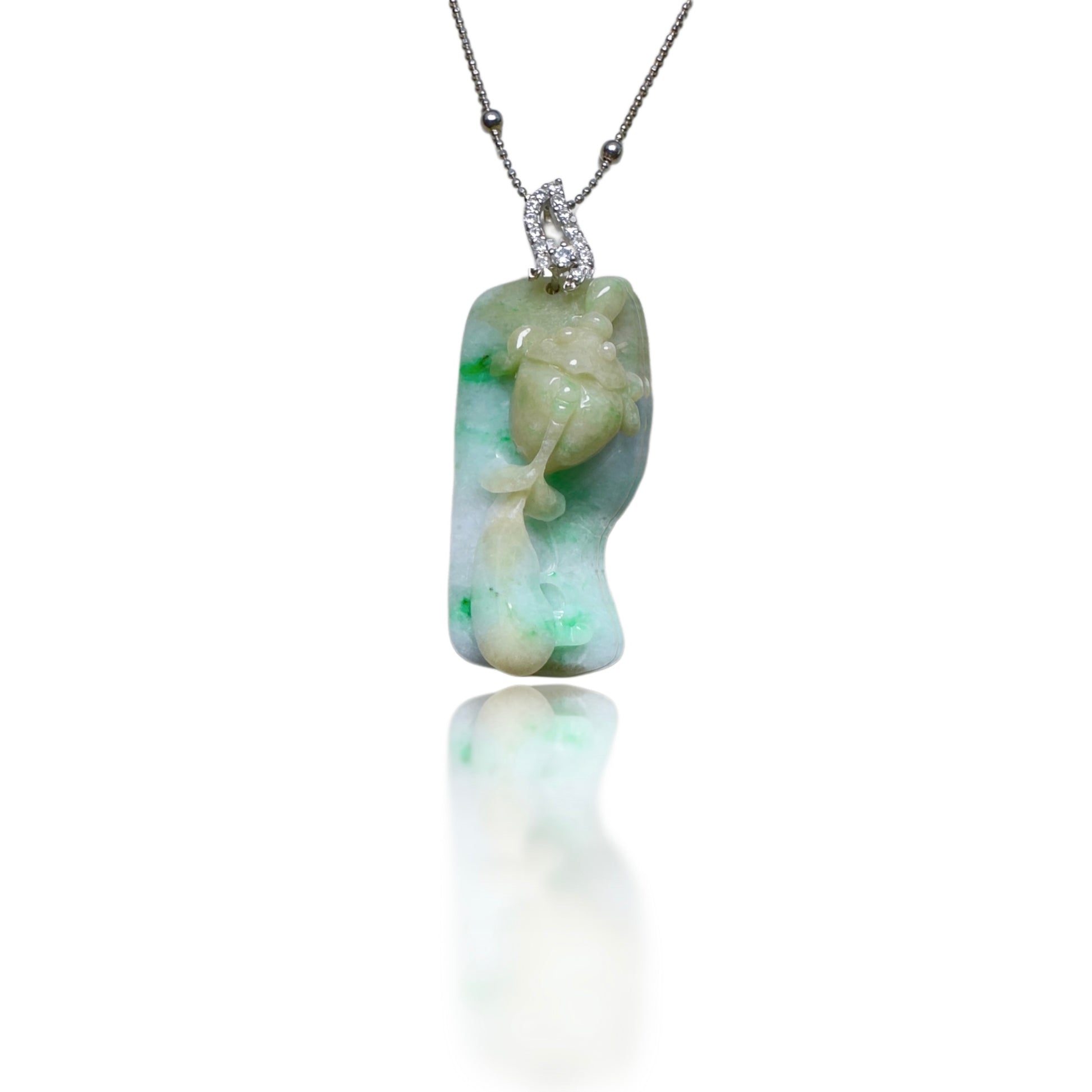 Abundance Pendant with Grade A Burma Jade Goldfish Carving