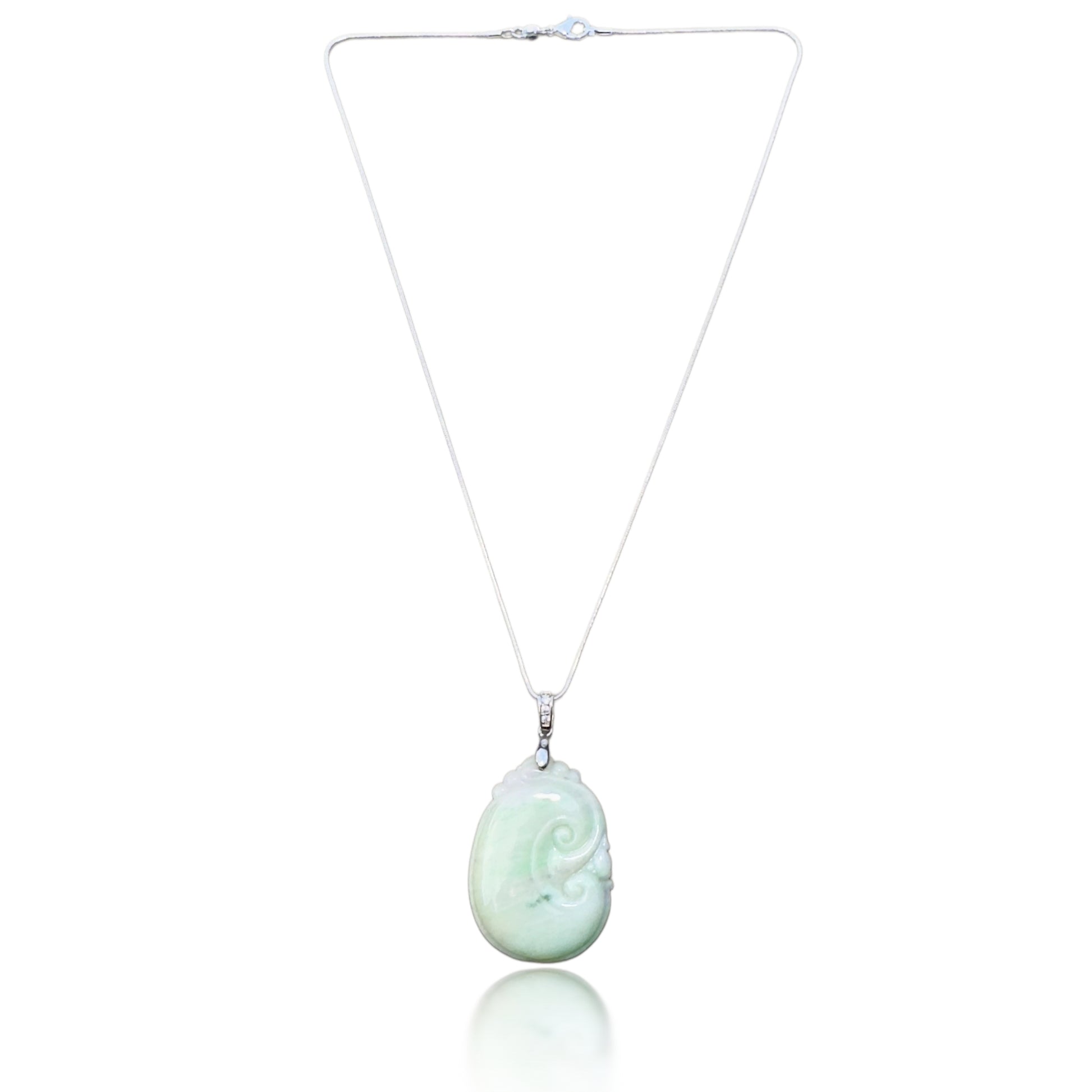 Crafted from premium-grade Burma jade, this exquisitely carved Ruyi pendant embodies centuries of cultural significance and natural energy. The Ruyi – meaning “as you wish” in Chinese – is a traditional symbol of power, good fortune, and smooth life paths. When combined with the deeply soothing essence of jade, it becomes a powerful talisman for emotional balance and healing.