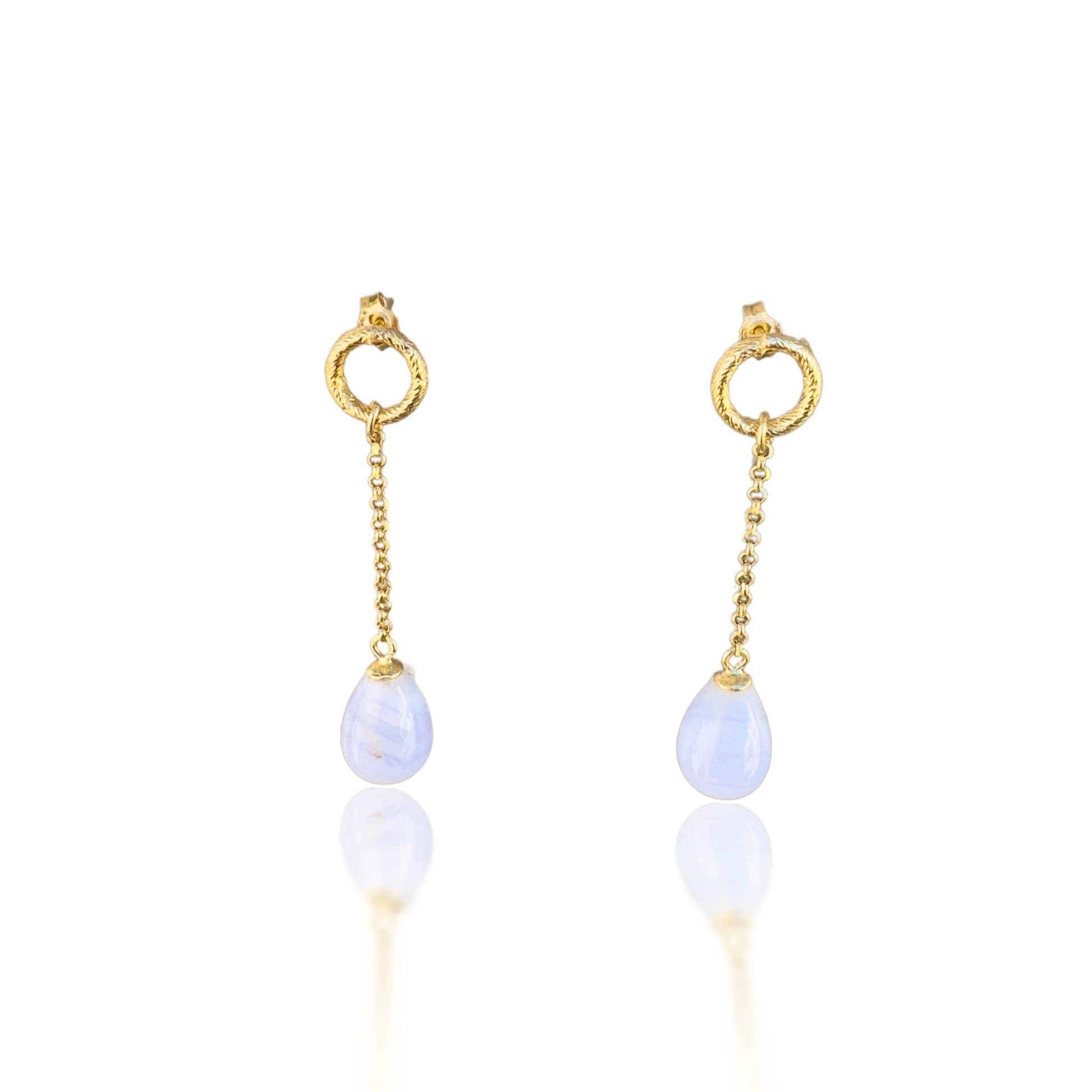 Calming Earrings with Blue Lace Agate and Yellow Gold Chain