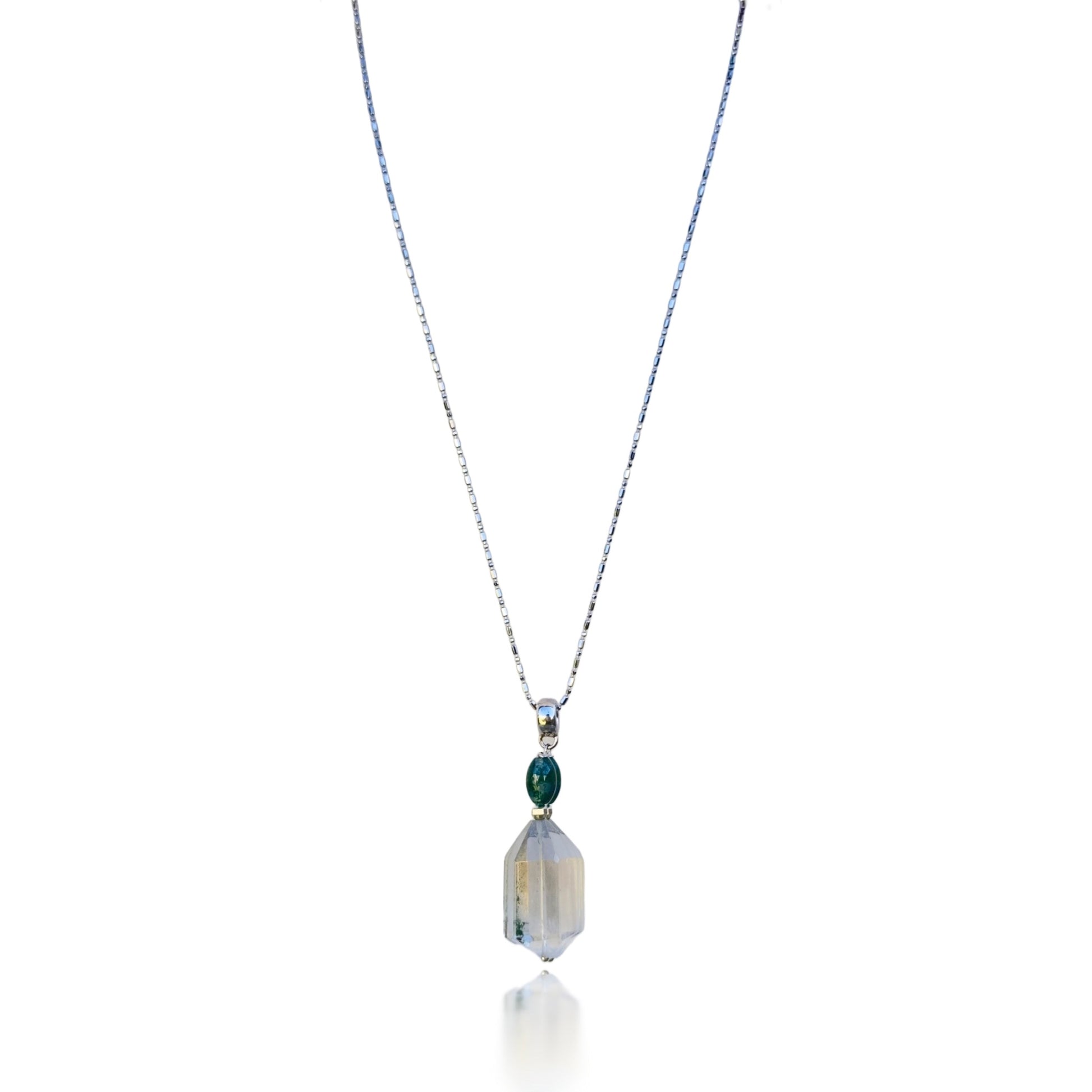 Cleansing Pendant with Green Phantom Quartz and Moss Agate