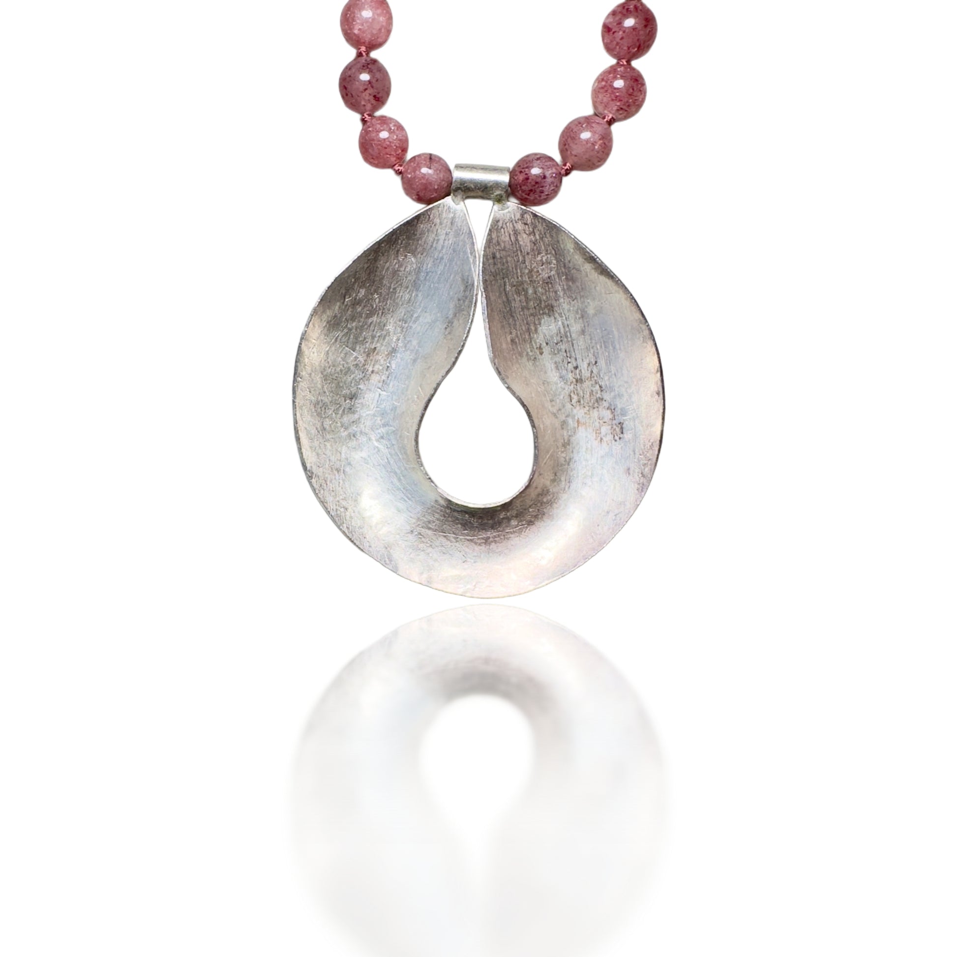 Courage Necklace with Ruby Zoisite, Strawberry Quartz and Pure Silver Double Fish Pendant