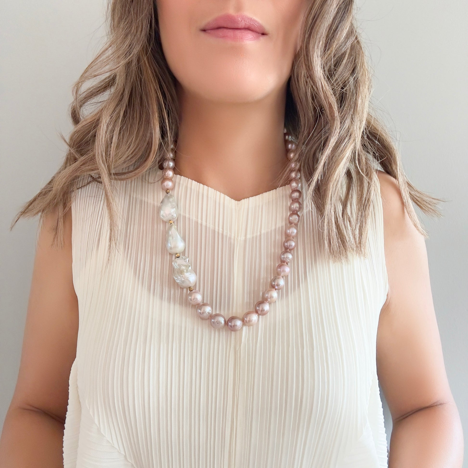 Embrace balance and inner peace with this stunning handcrafted necklace, featuring luminous white baroque pearl paired with mysterious pink pearl. Each uniquely shaped pearl is a symbol of natural beauty, imperfection, and individuality—reminding you to honour your own path and truth.