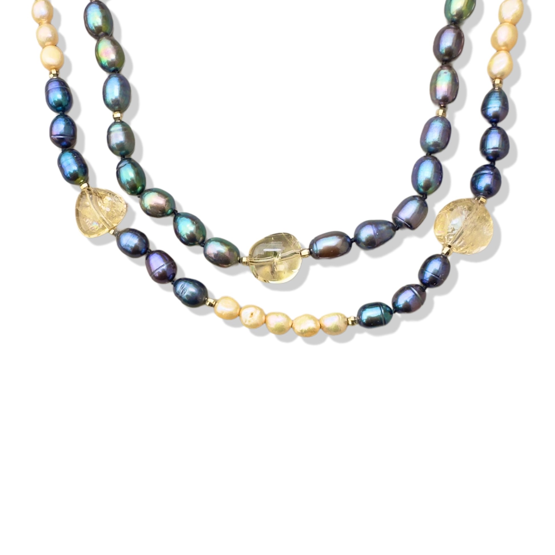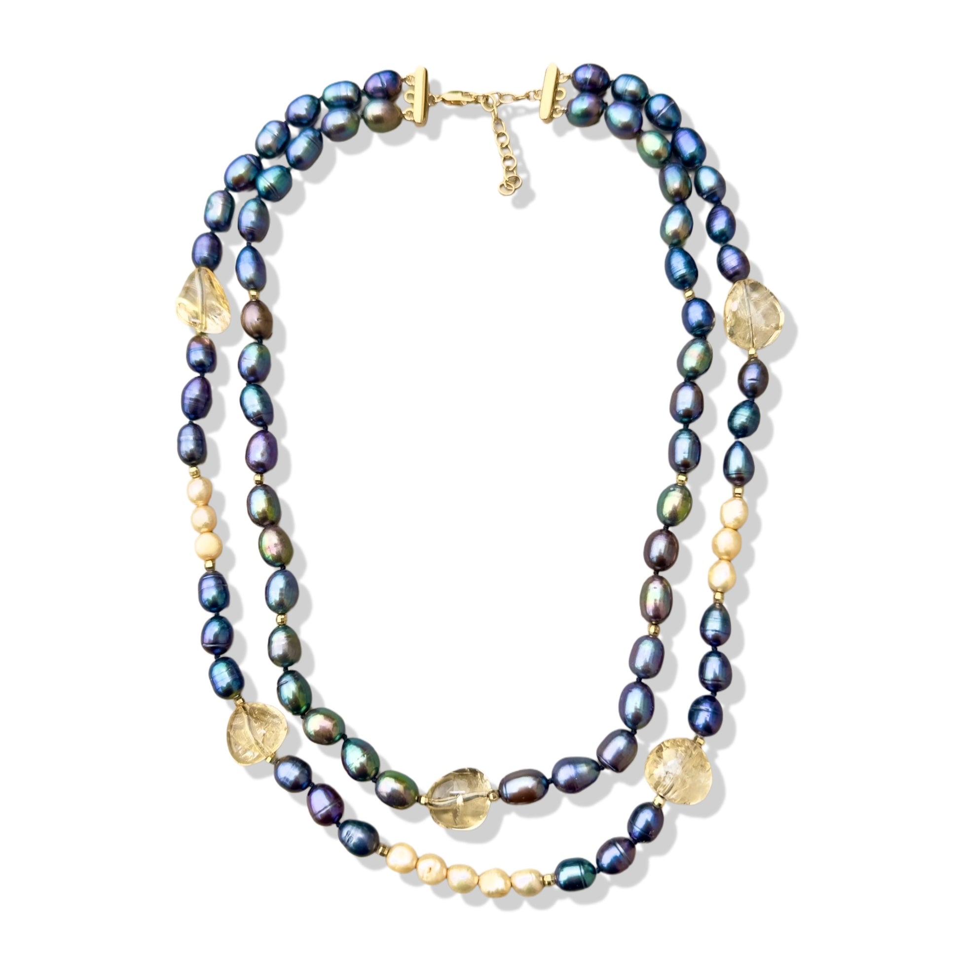 Inner Peace Double Strand Necklace with Pearl and Citrine