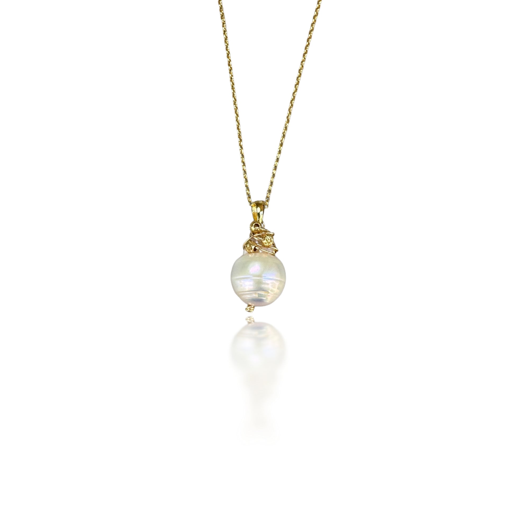 Inner Peace Pendant with White Baroque Pearl and Gold