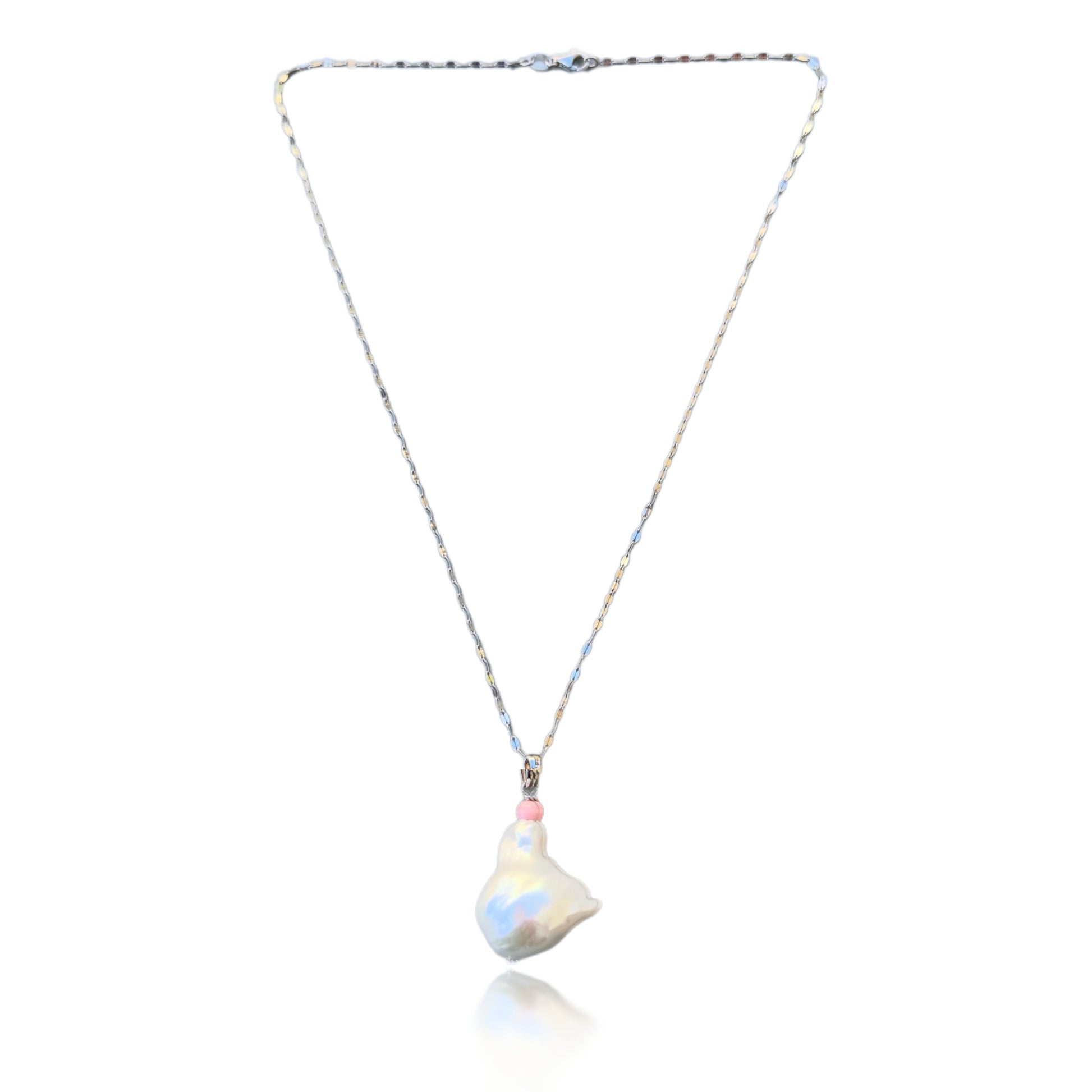 Inner Peace Pendant with White Baroque Pearl and Pink Opal