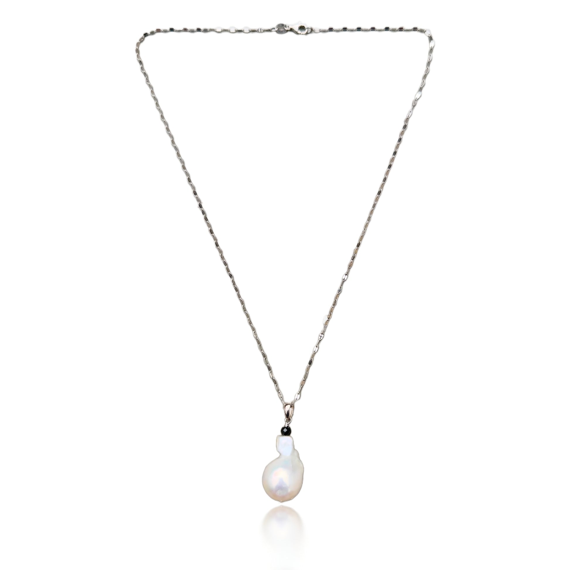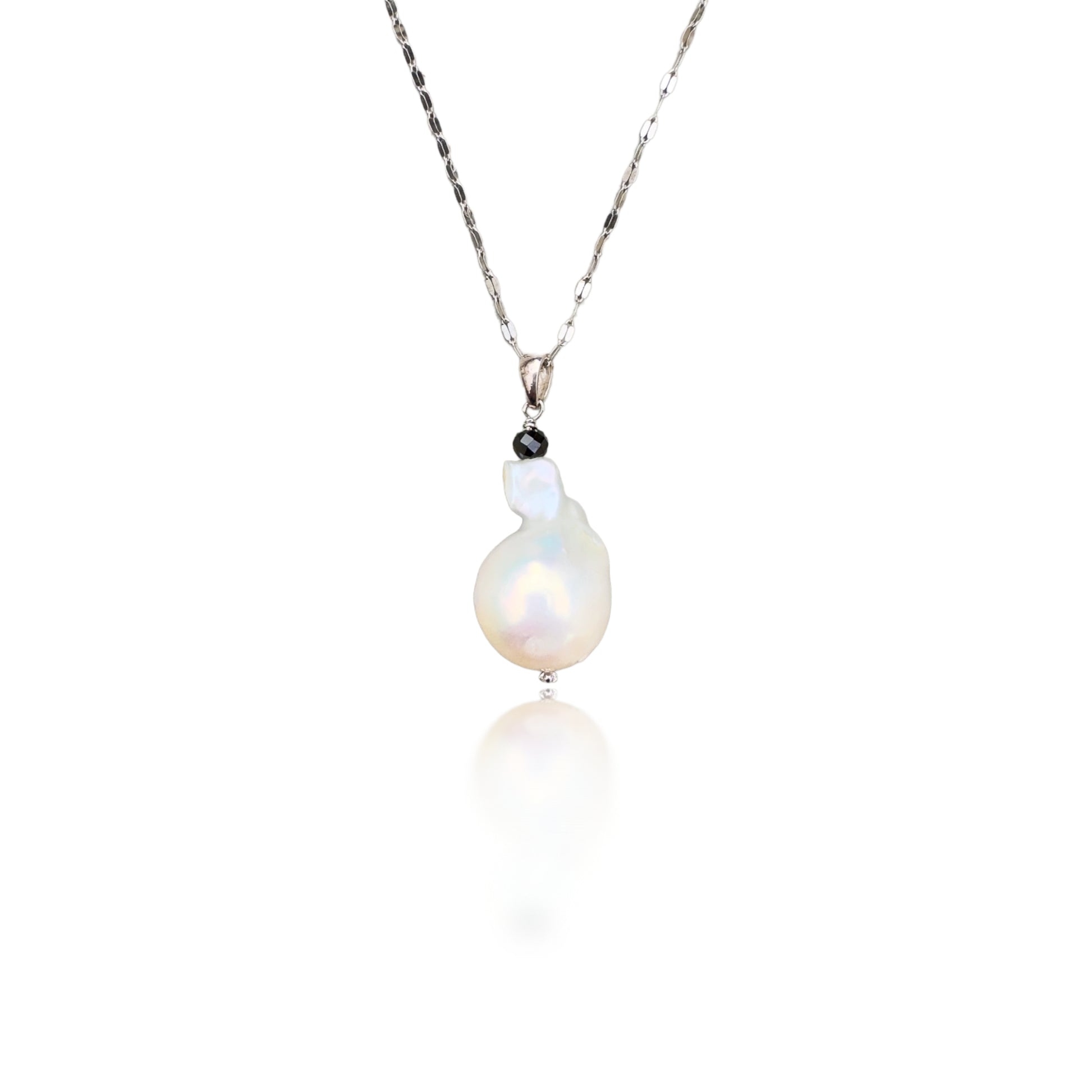 Inner Peace Pendant with White Baroque Pearls and Black Spinel