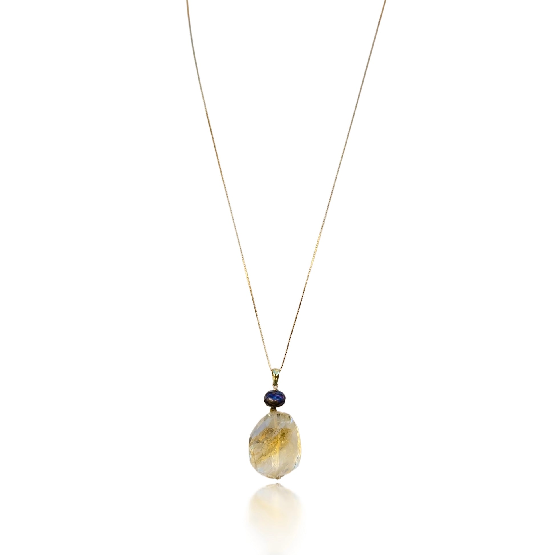 This iridescent citrine and peacock freshwater pearl is a unique blend of nature's elegance and healing energies, crafted with natural gemstone and yellow gold. The pendant is designed to inspire balance, peace, and emotional healing.