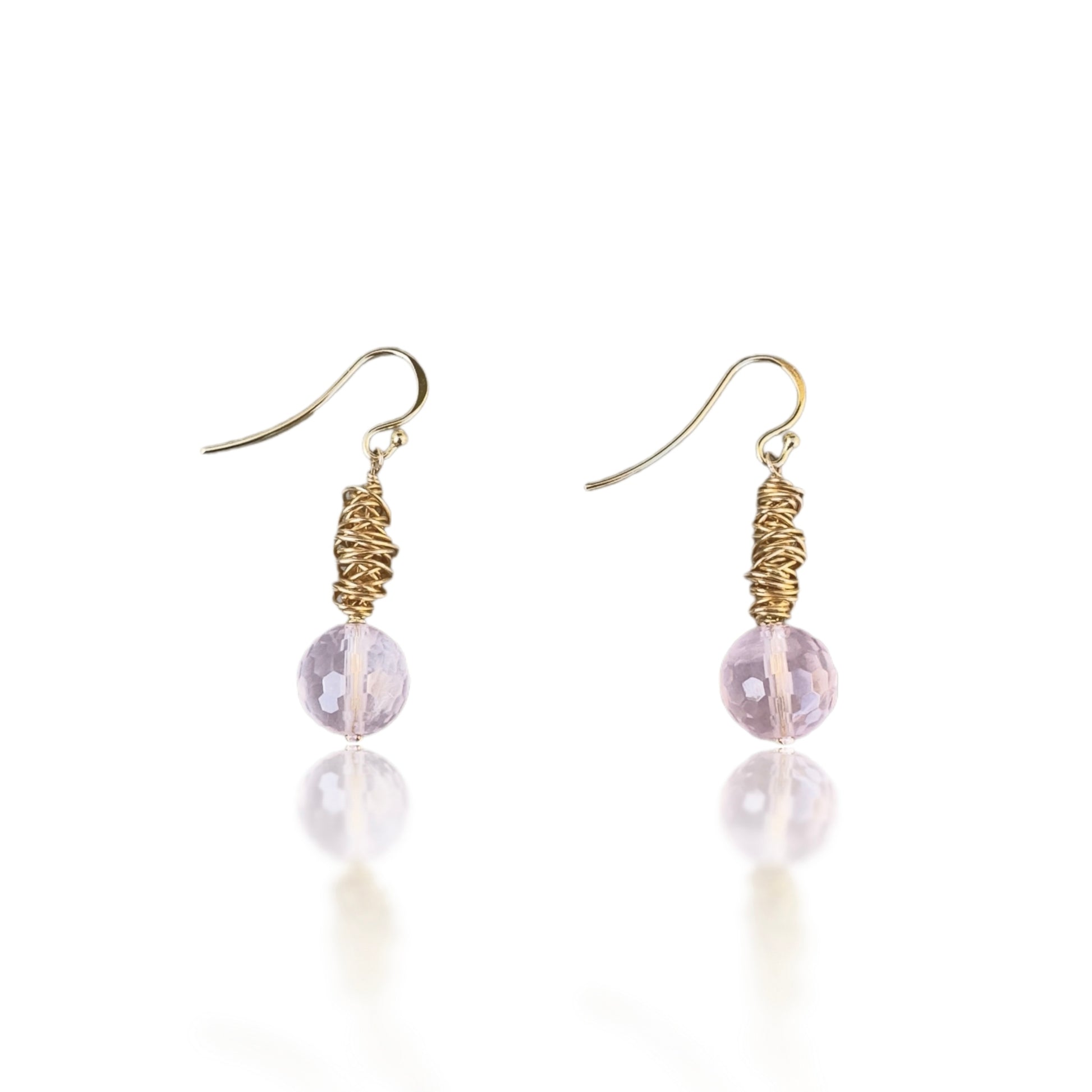 Love Earrings with Rose Quartz and Yellow Gold Wire