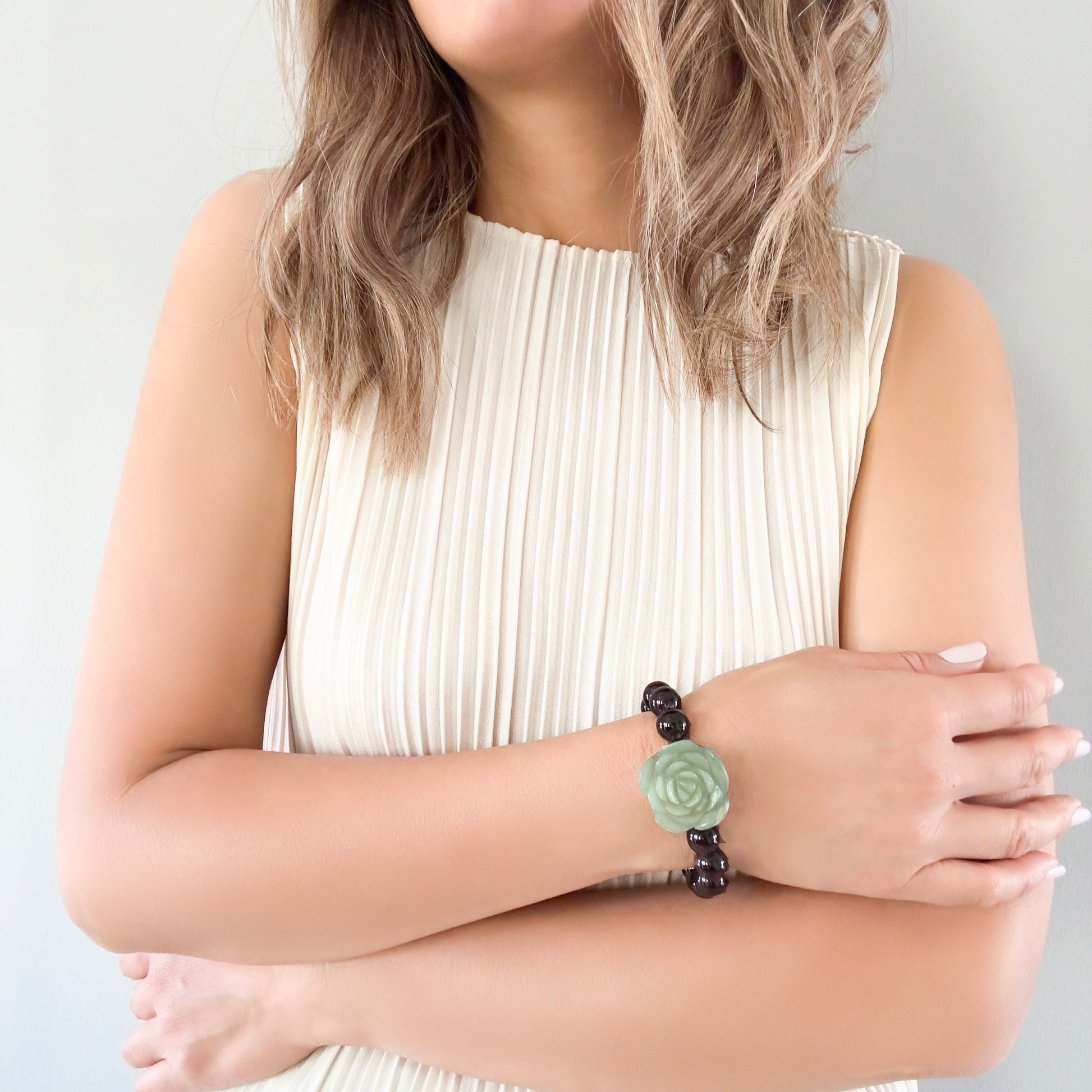 Passion Bracelet with Granet and Green Chalcedony Flower