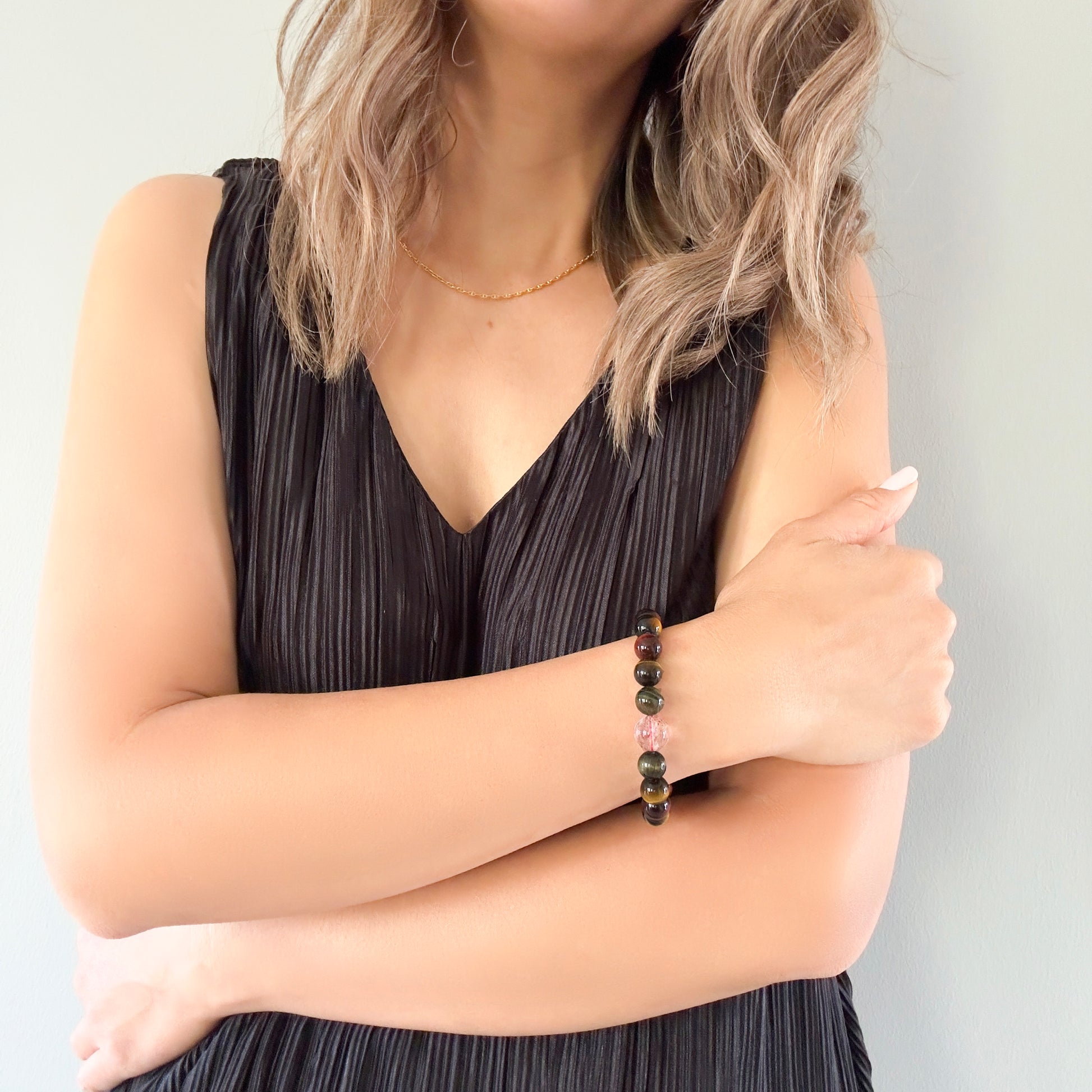 Protection Bracelet with Tiger's Eye and Red Rutilated Quartz