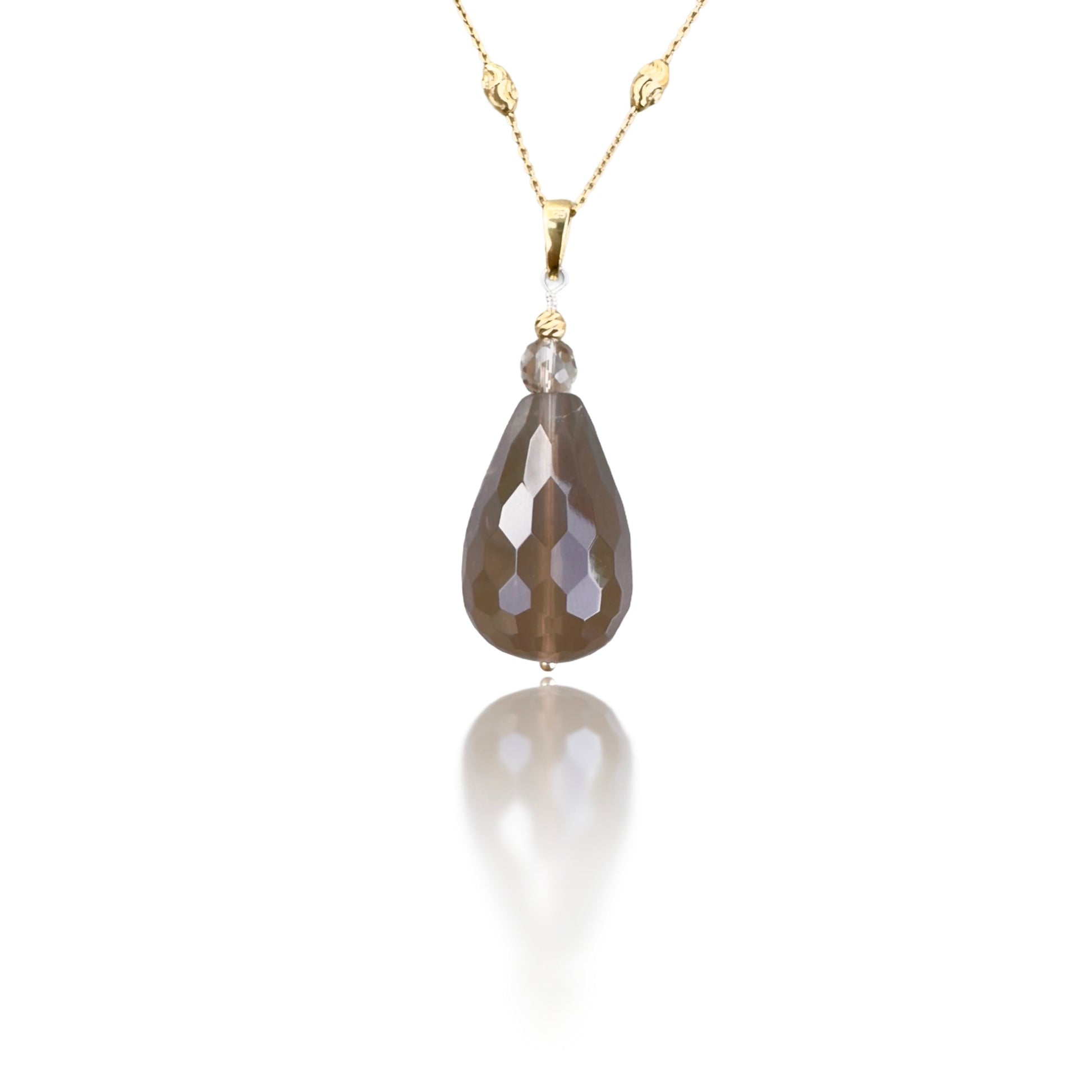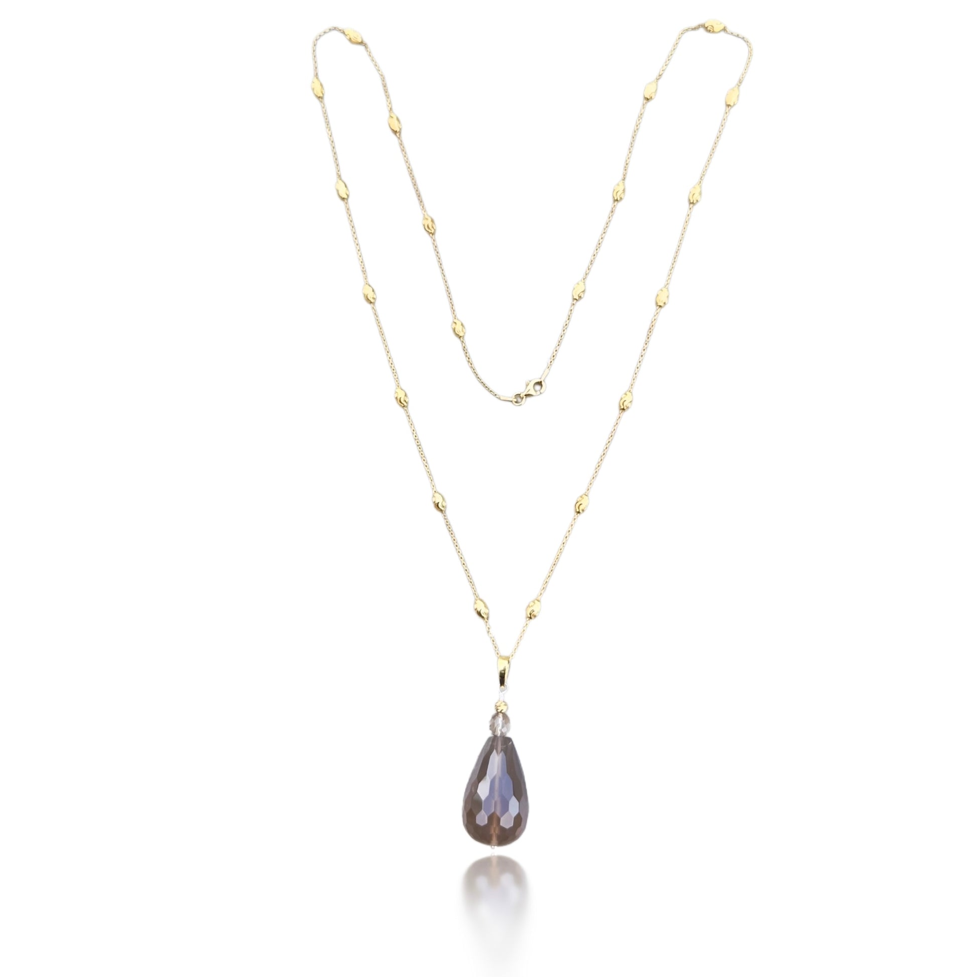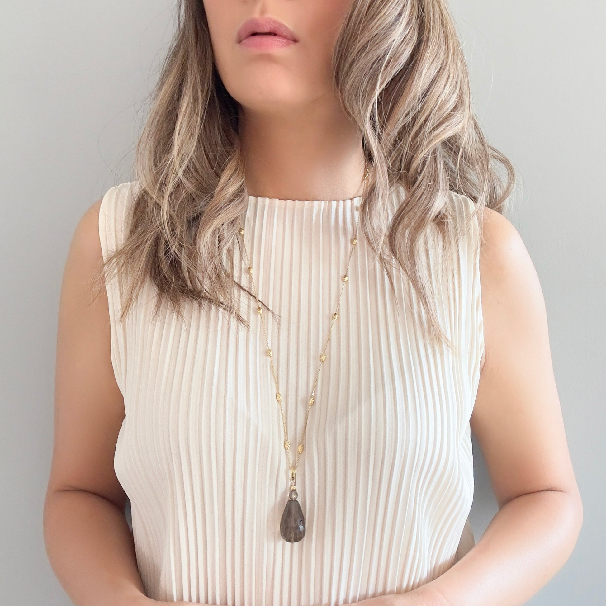 Protection Long Necklace with Smoky Quartz and Yellow Gold