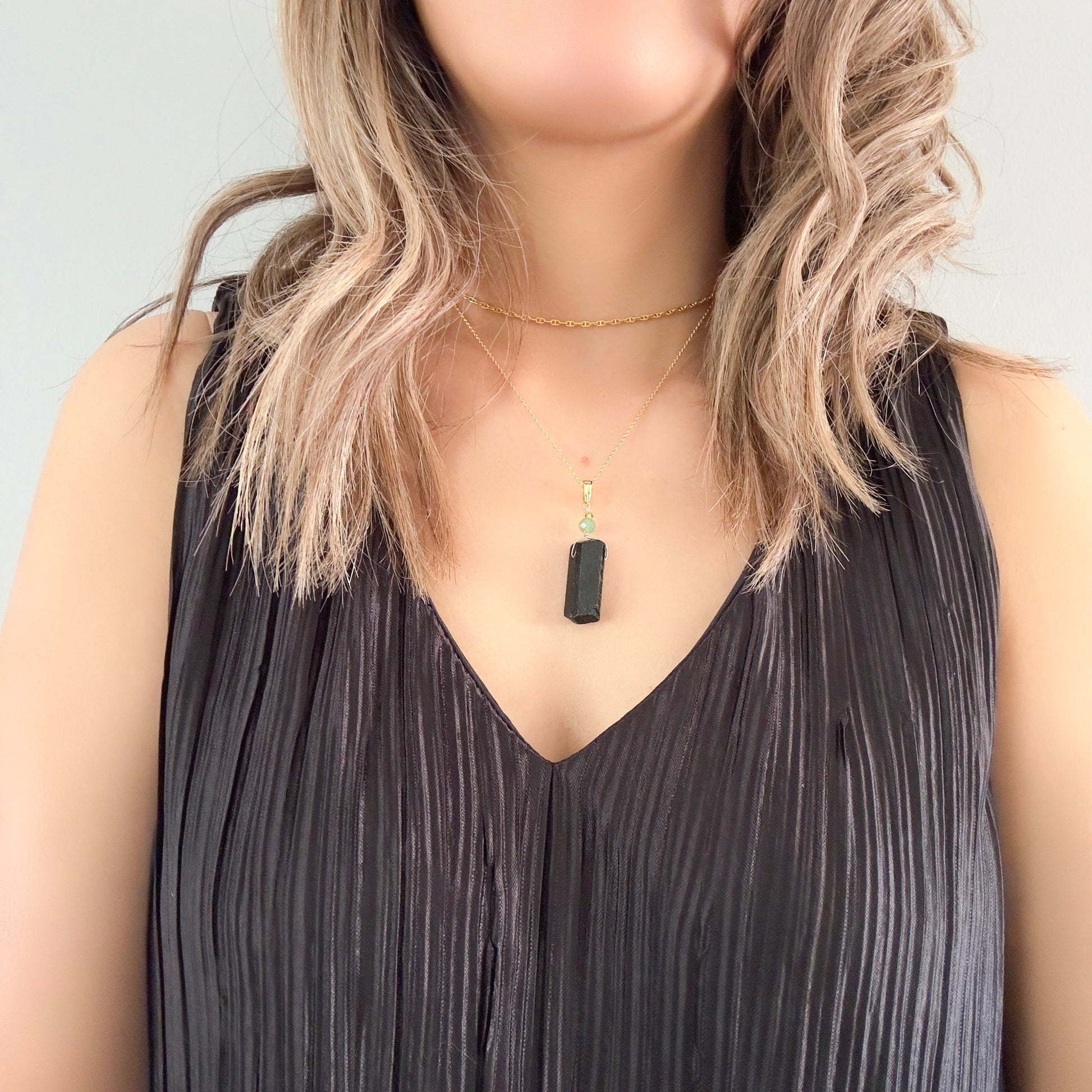 Protection Pendant with Black Tourmaline and Green Chalcedony