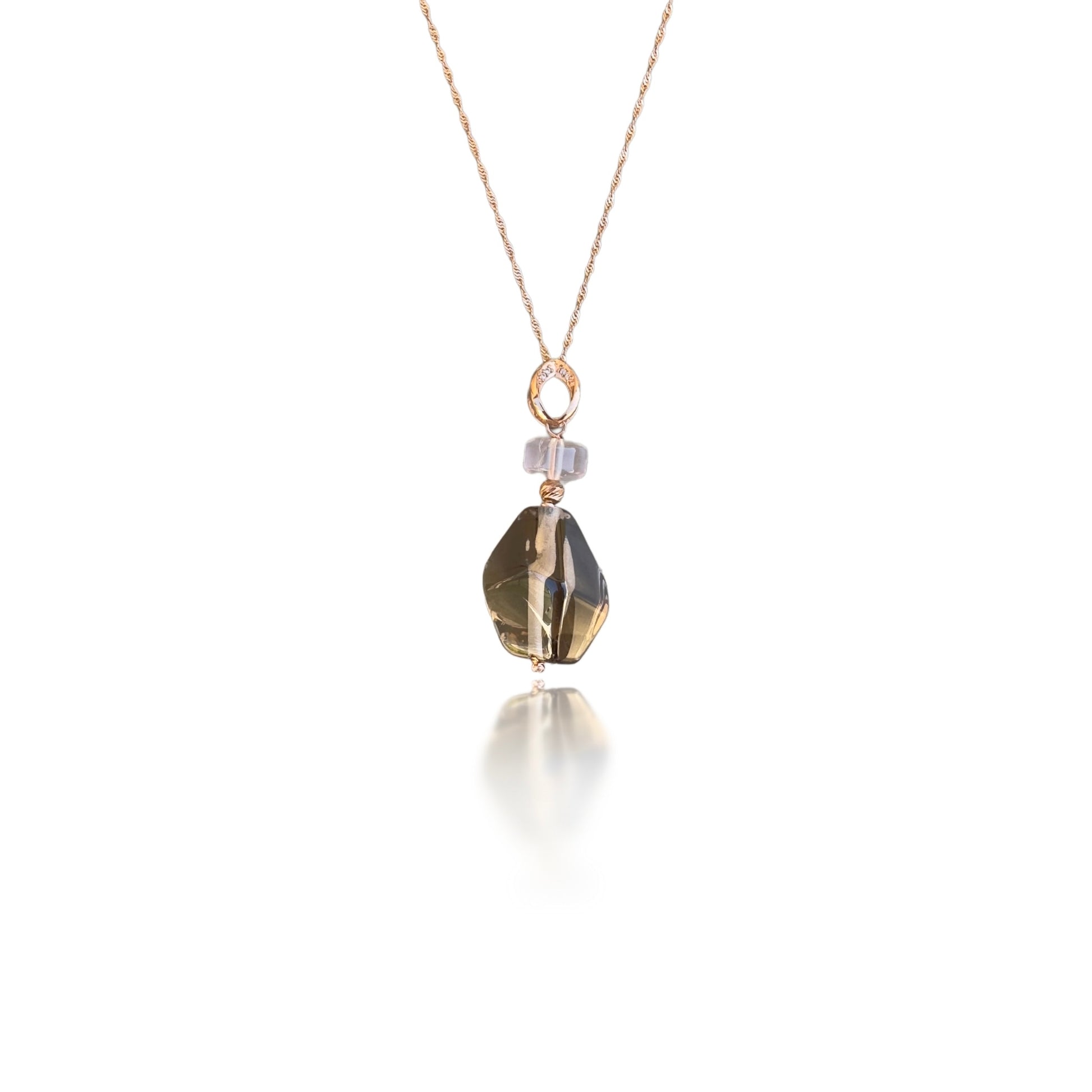 This rose quartz and smoky quartz pendant serves as a reminder to cultivate love, healing, and balance in every aspect of your life. Ideal for anyone on a journey of emotional growth, self-care, or seeking a deeper connection to their inner peace.