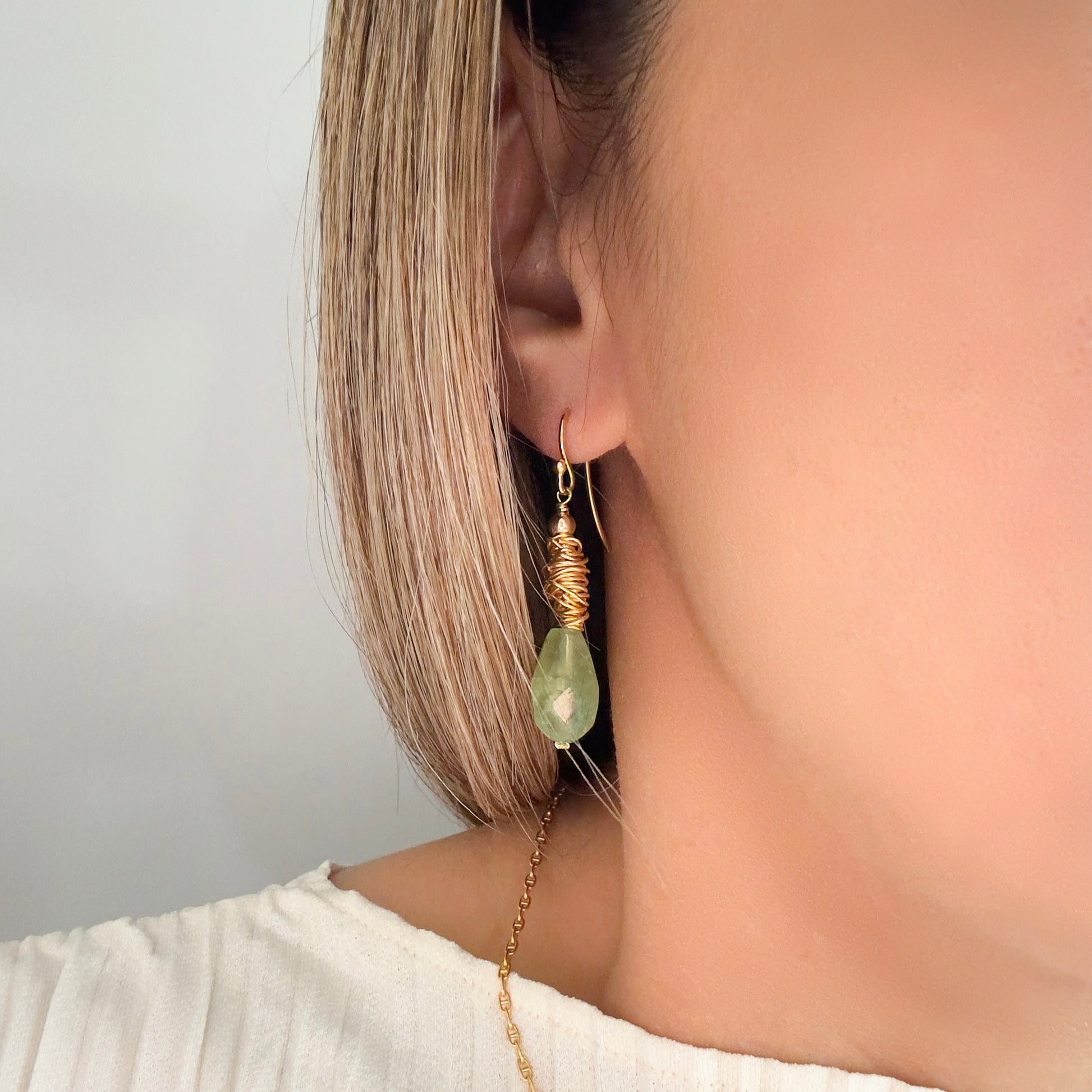Renewal Earrings with Prehnite and Yellow Gold Wire Bead
