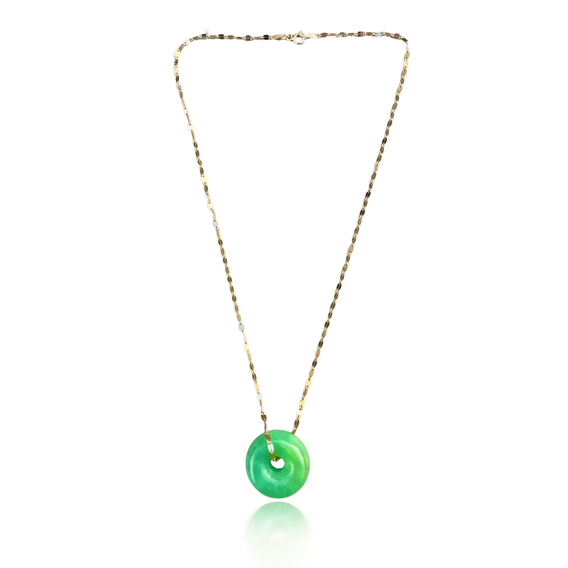 The chrysoprase donut, with its continuous, unbroken circle, symbolises eternity and the flow of positive energy. Whether worn as a daily reminder of self-love or as a tool for deeper meditation, this pendant encourages harmony between the heart and mind. Paired with the timeless elegance of yellow gold, this piece is designed to bring both beauty and balance into your life.