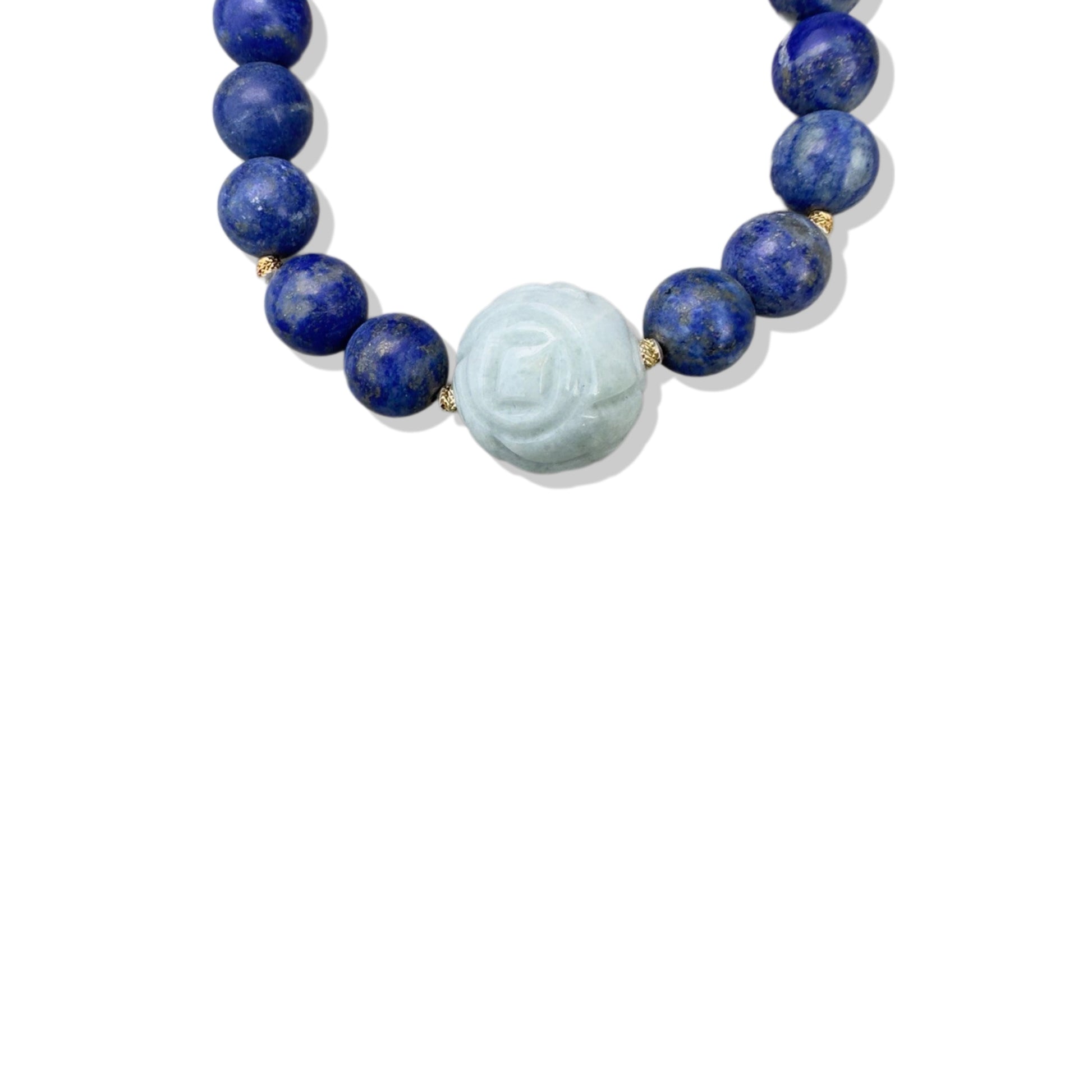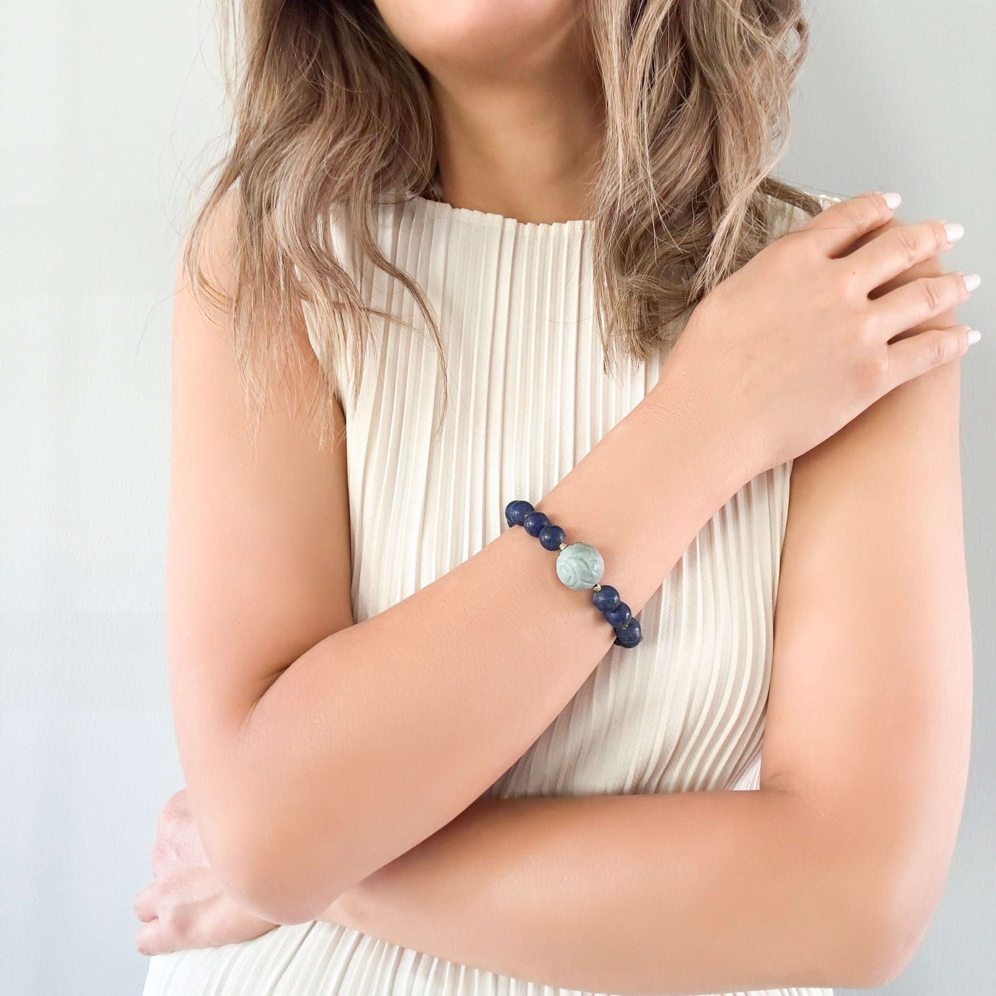 Self-awareness Bracelet with Lapis, Burma Jade Carving
