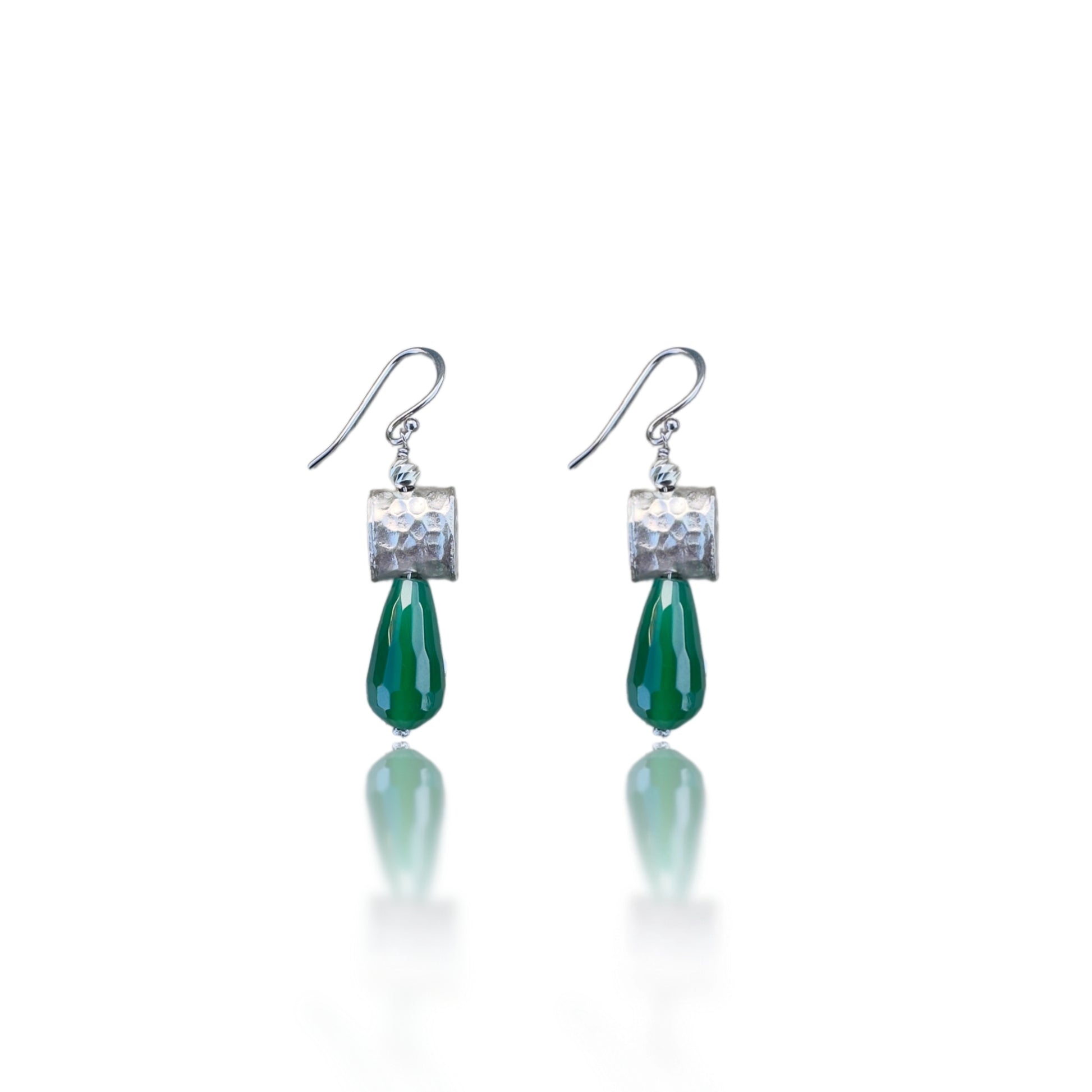 Strength Earrings with Green Onyx and Silver Hammer Bead